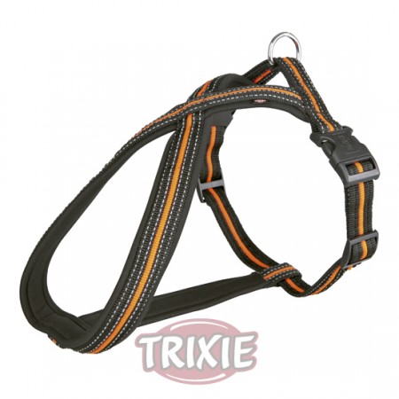 Arnés resistente de nylon de alta calidad ajustable. Con hilos reflectantes y señas de color para una mayor seguridad. Con un cómodo interior forrado de neopreno.