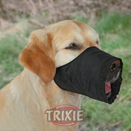 Bozal para perro de nylon de color negro, para periodos cortos de uso. Es completametne ajustable para amyor comodidad.