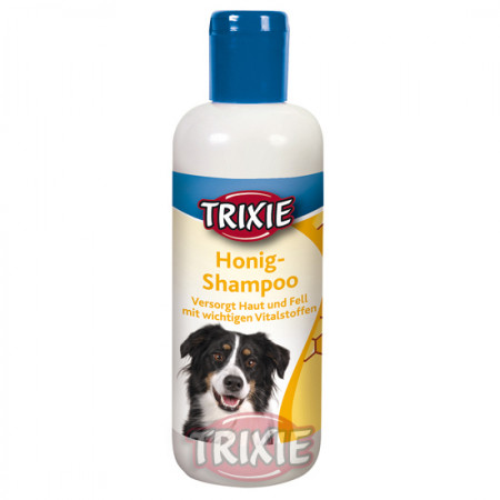 Champú para perros con Miel. Proporciona vitalidad y brillo al pelo de forma natural. Apropiado para razas de perros con el pelo largo. Tiene un suave efecto anti-bacteriano que calma la piel y alisa el pelo.
