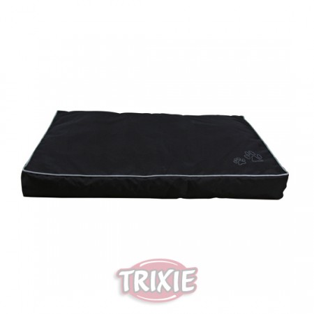 Cojín con funda de nylon repelente al agua y relleno de fibra de poliéster. Indicado para uso en exteriores y lavable a máquina hasta 30ºC. Color negro.