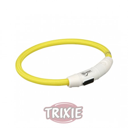Aro luminosos para mayor seguridad durante los paseos nocturnos o en situaciones de baja visibilidad. Con dos modos de luz: intermitente y continua. Puedes recargar el collar a través de un cable USB. La talla es adaptable con un solo corte. La duración de la batería es de 5 a 8 h. Color Amarillo.