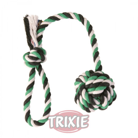 Juguete de cuerda para perros en fibra natural que limpia la dentura del perro a la vez que juega. Con asa de mano. Colores surtidos.