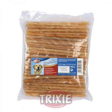 Estos palitos naturales deshidratados de cuero seco son un suplemento a la dieta normal del perro.