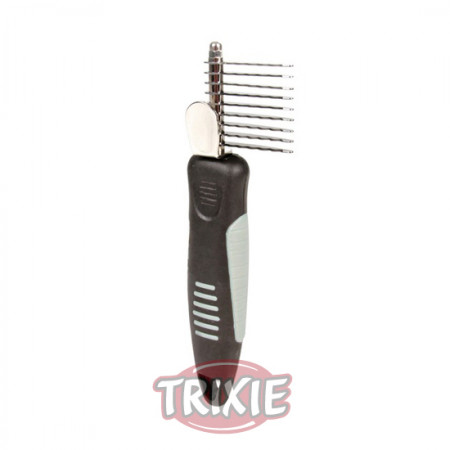 Peine cortanudos para perros y gatos de pelo largo. Cuchillas muy afiliadas para apurar y cortar los nudos en las mascotas de pelo largo. Dispone de un protector para el pulgar.