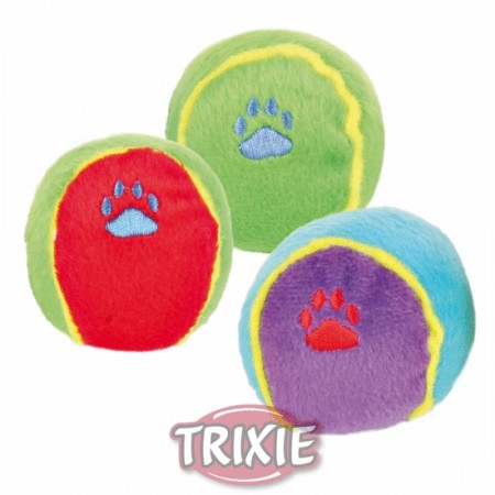 Pelota de tenis de peluche con relleno de espuma y sonido. Colores surtidos.