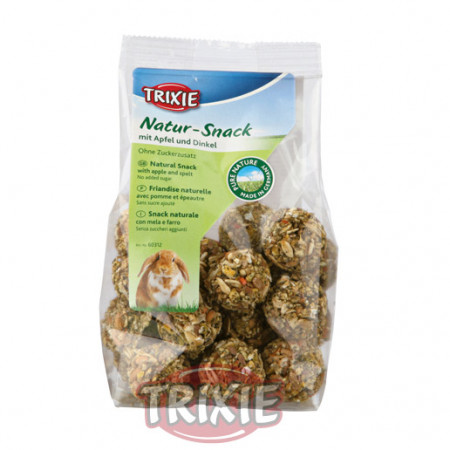 Pelotitas con manzana y cereales para conejos y roedores. Ofrece una dieta saludable y mucho entretenimiento a pequeños mamíferos y roedores.