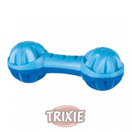 Pesa de caucho termoplástico que absorbe el agua. al morderla desprende el líquido de su interior. pude congelarse para mayor frescura. Al ser robusta y duradera es ideal para facilitar la dentición en cachorros.