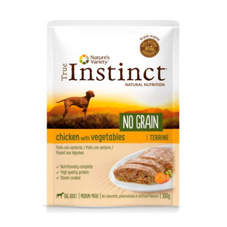 La comida húmeda para perros True Instinct No Grain, es una alternativa ideal como alimentación canina. Gracias a su minuciosa elaboración, posee los nutrientes necesarios para alimentar de manera correcta, completa y saludable, gracias a su composición basada en sencillos ingredientes de alta calidad como el pollo o el salmón. Acompañado de verduras, aporta una equilibrada alimentación para los perros.
