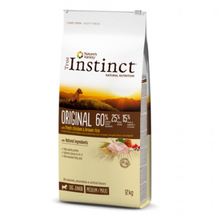 El pienso para perros junior True Instinct Original Medium – Maxi está compuesto por ingredientes naturales de gran calidad que proporcionarán a tu pequeña mascota una dieta sana y equilibrada. Está especialmente elaborada para cachorros, hasta un año, de razas medianas y grandes. Su ingrediente principal es el pollo, y este viene acompañado de frutas, verduras y cereales integrales, lo que le aporta un delicioso sabor a la receta que sin duda tu cachorro sabrá apreciar y disfrutar.