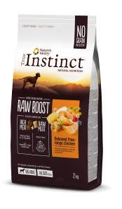True Instinct RAW BOOST® es una innovadora nutrición natural sin cereales basada en una deliciosa combinación de croquetas elaboradas con carne o pescado deshuesados como primer ingrediente, y trozos de carne poco procesada, que le aportan un sabor intenso de manera natural y saludable.