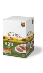 True Instinct™ NO GRAIN proporciona un alimento húmedo natural único y equilibrado. Elaborado con ingredientes sencillos y saludables como pollo, buey o pavo seleccionados y acompañados de verduras y sin cereales: de fácil digestión, sabroso e ideal para perros que no toleran bien los cereales.