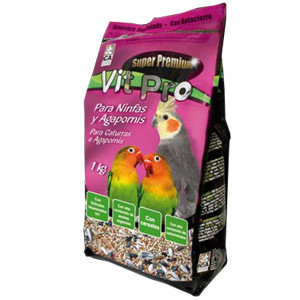 Alimento Completo para Cotorras, Ninfas y Agapornis con Mijo amarillo, avena pelada, alpiste, mijo rojo, pipas blancas, pipas negras, pipas girasol, gránulos vitaminados VIT.